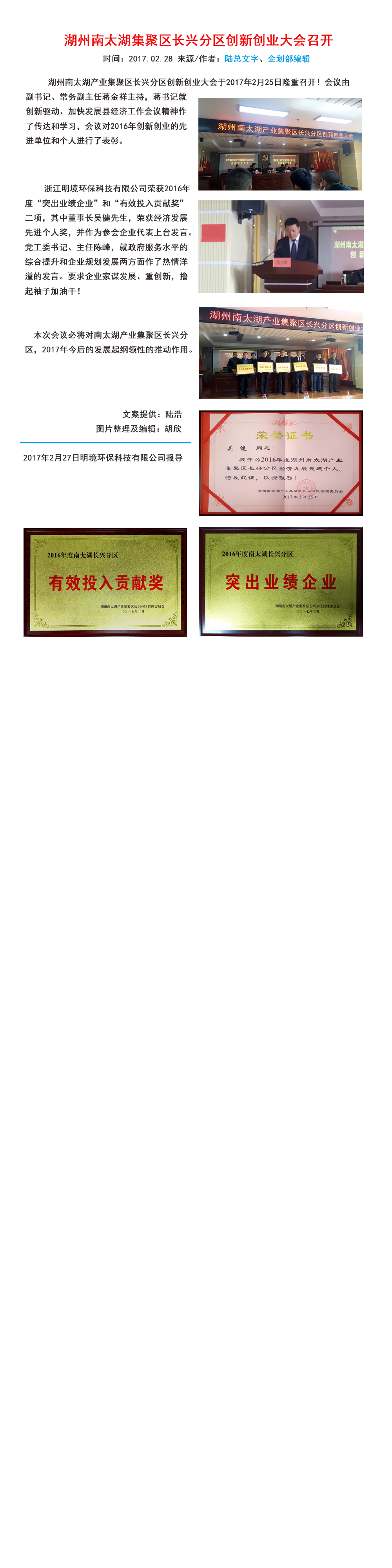 湖州南太湖集聚區(qū)長興分區(qū)創(chuàng)新創(chuàng)業(yè)大會召開