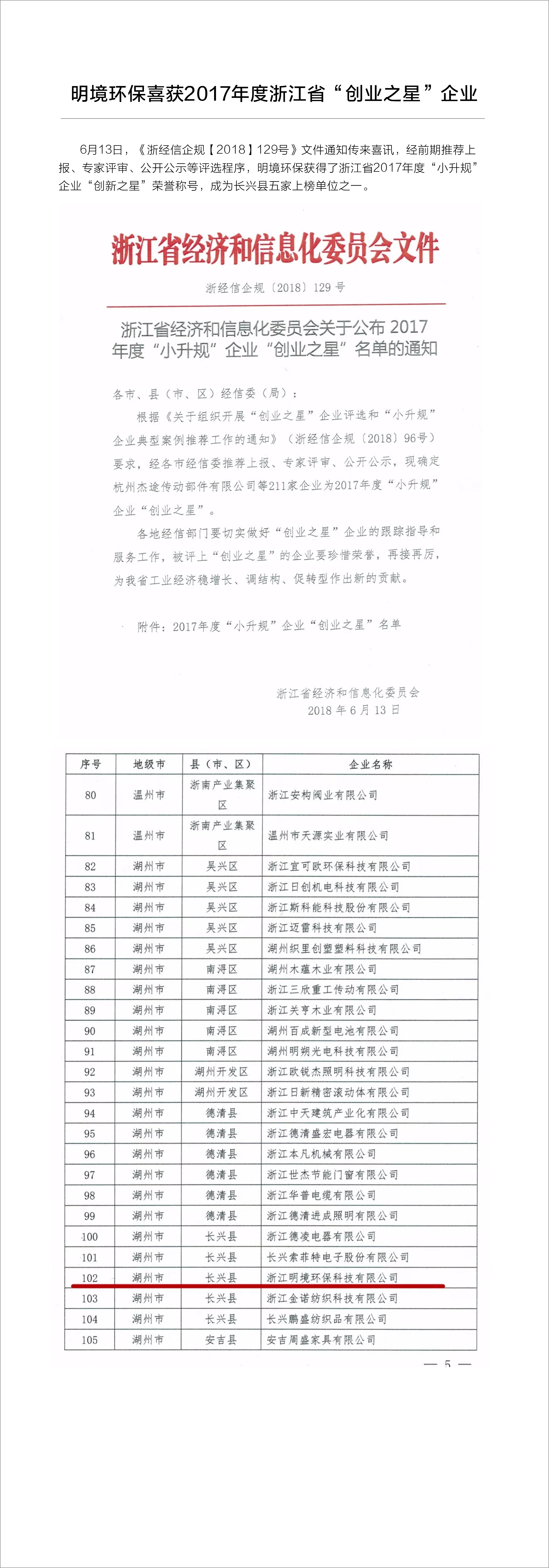 明境環(huán)保喜獲2017年度浙江省“創(chuàng)業(yè)之星”企業(yè)稱號